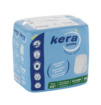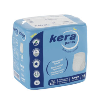 Τα kera Pants Plus είναι απαλά προστατευτικά εσώρουχα μίας χρήσης με άνετη εφαρμογή. Με μια σειρά από καινοτόμα χαρακτηριστικά, προσφέρουν προστασία από τις διαρροές, τις οσμές και την υγρασία.
