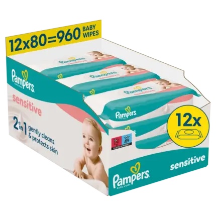 Pampers Sensitive Μωρομάντηλα 12×80τμχ (960 τεμάχια)