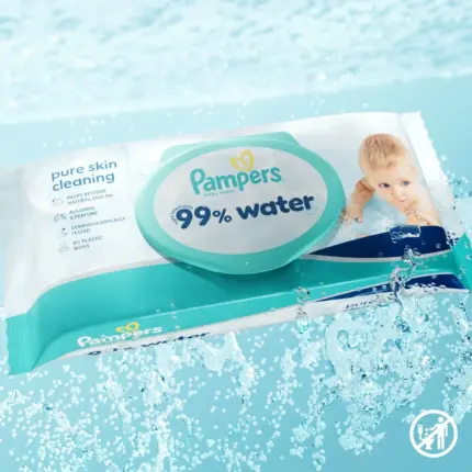Pampers Aqua Pure — 99% νερό, χωρίς αρώματα. Ιδανικά για νεογέννητα.