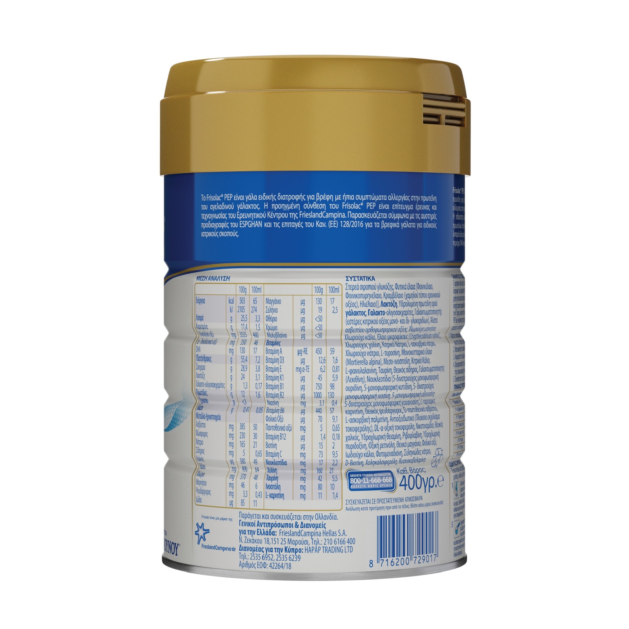 Το Frisolac PEP περιέχει λακτόζη, υδρόλυμα πρωτείνης ορού γάλακτος και γαλακτο-ολισακχαρίτες.